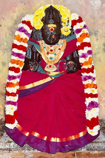 The Devas and Rishis went to ‘Kailash’ to witness the marriage of Lord Shiva, due to which, the Northern side of the Earth sank. To level this , Lord Shiva sent sage Agasthiya to the Southern side of the Earth. Sage Agasthiya came to the Southern side of Earth and installed 108 Lingas and performed pooja. Lord Thulaseeswarar is one of the 108 Lingas. Sage Agasthiyar has performed abishekam to the Lord Thilaseeswarar by erecting a Thadagam and performed poojas with Konnai malai and thulasithalam. That day was Puratasi Powrnami. Lord Thulaseeswarar was pleased by the poojas performed by Sage Agasthiyar and blessed him in the form Ardhanardeswarar. Lord Thulaseeswarar is of Ardhanardeswarar lingam.